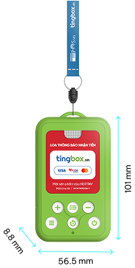 Tingbox Mini có kích thước chỉ như tấm thẻ nhân viên (101 × 56.5 × 8.8 mm) và đi kèm dây đeo cổ, nên mang theo cực kỳ nhẹ nhàng khi di chuyển. Không màn hình nhưng loa thông báo to, rõ, cùng pin Li-Polymer cho nhiều giờ sử dụng liên tục — lý tưởng cho bán hàng lưu động, sự kiện, ship hàng.